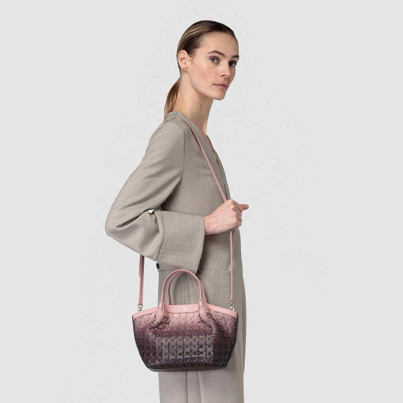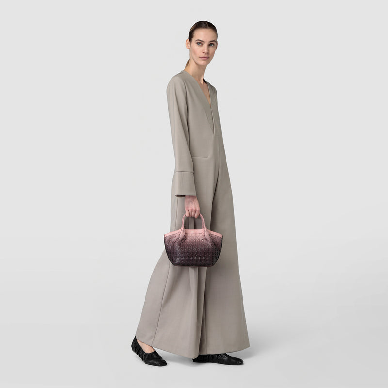 The Mini Secret Bag in Shaded Plum Mosaico nappa leather combines a uniquely petite style with the signature shape of a hallmark of the Maison, the Secret Bag. Because of its compact size and sumptuous texture, the Mini Secret Bag is both formal and informal, carrying all your daily essentials, seamlessly taking you from day to night while remaining lightweight and portable. This bag is made of Mosaico leather, an exclusive weaving process dating back to 1947, a true emblem of Serapian craftsmanship and Made in Italy tradition.