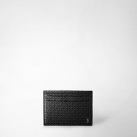 The sleek and refined 4-Card Holder in Ocean Blue Stepan coated canvas and Black leather inserts is perfect for when you don't need all the contents of your wallet. It can hold bank cards and business cards in its four slots and central pocket. Born from the far-sighted vision of Ardavast Serapian, Stepan is a sturdy and water-resistant material with an all-over S-etching detail.