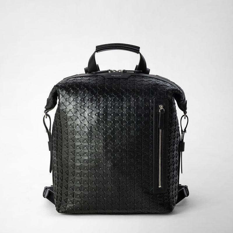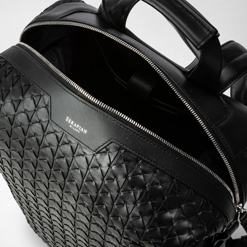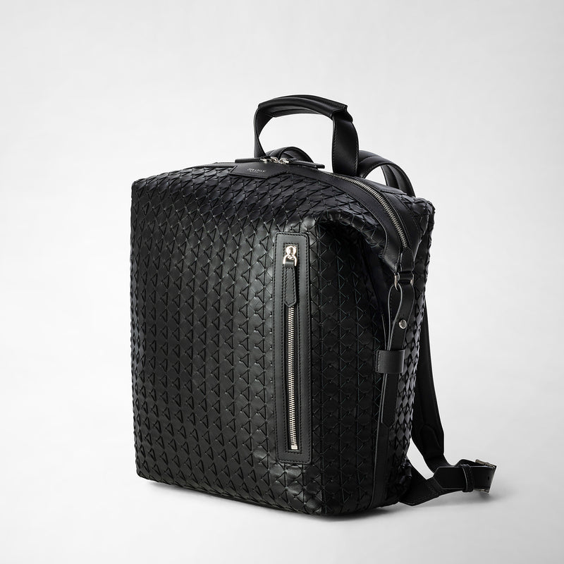 Effortlessly transition from the office to overnight trips with the elegant Backpack in Black Mosaico nappa leather. Sophisticated yet distinctly sporty, this accessory opens to reveal ample space for storing your away-from-home essentials, whether they be a work laptop or a change of clothes. Each Backpack is meticulously handcrafted with the signature Mosaico weaving process, a house exclusive since 1947. Buttery soft nappa leather strips in tonal or contrasting hues are delicately handwoven by expert craftsmen to create an eye-catching graphic pattern that is a true emblem of the Maison's virtuosity and Made in Italy tradition.