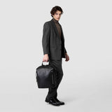 Exterior: Single two-way zip fastening, side straps with knob, front zip pocket, adjustable leather shoulder straps. Interior: Single compartment with laptop pocket and two phone pockets. Microfiber lining. Palladium finish hardware.