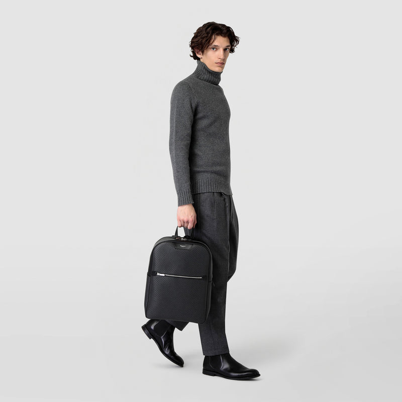 Sleek and dynamic, the Backpack in Asphalt Gray Stepan coated canvas and Black leather is the go-to bag for men who prefer a casual look even on formal occasions. Its spacious interior features various compartments and pockets to keep all your essentials on-hand and tidy. Created to stand the test of time, it is made from Stepan coated canvas, a sturdy and water-resistant material with an all-over S-etching detail. Originating from the far-sighted vision of Ardavast Serapian, Stepan was first trademarked in the mid-seventies and remains an exclusive house emblem.