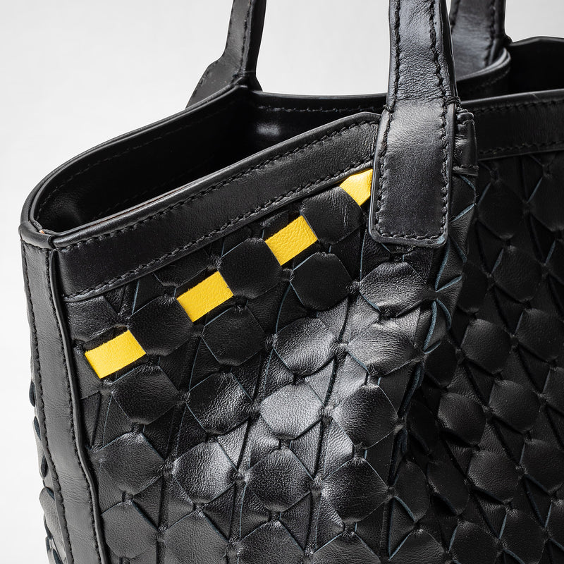 Composition: Woven lambskin nappa leather and Italian calfskin leather