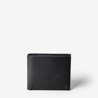 View photo: Front view of 8-CARD BILLFOLD WALLET IN EVOLUZIONE LEATHER, crafted from black textured calfskin with discreet logo at bottom right.