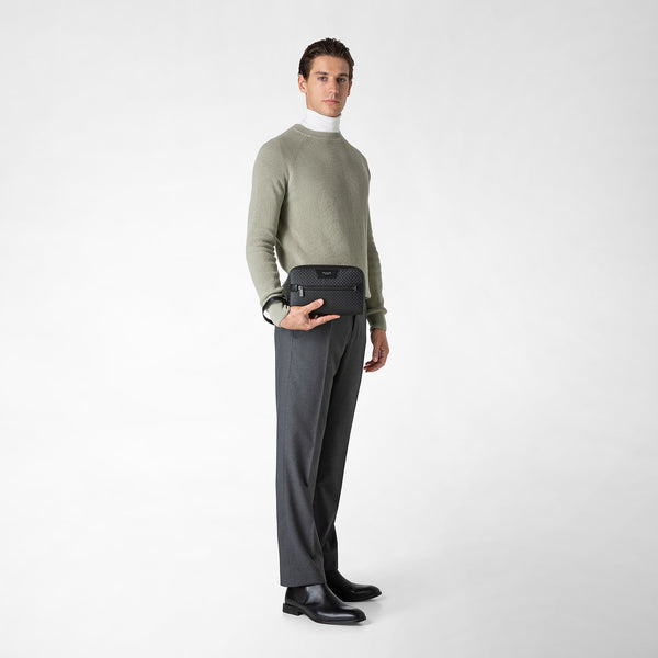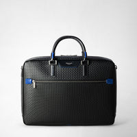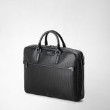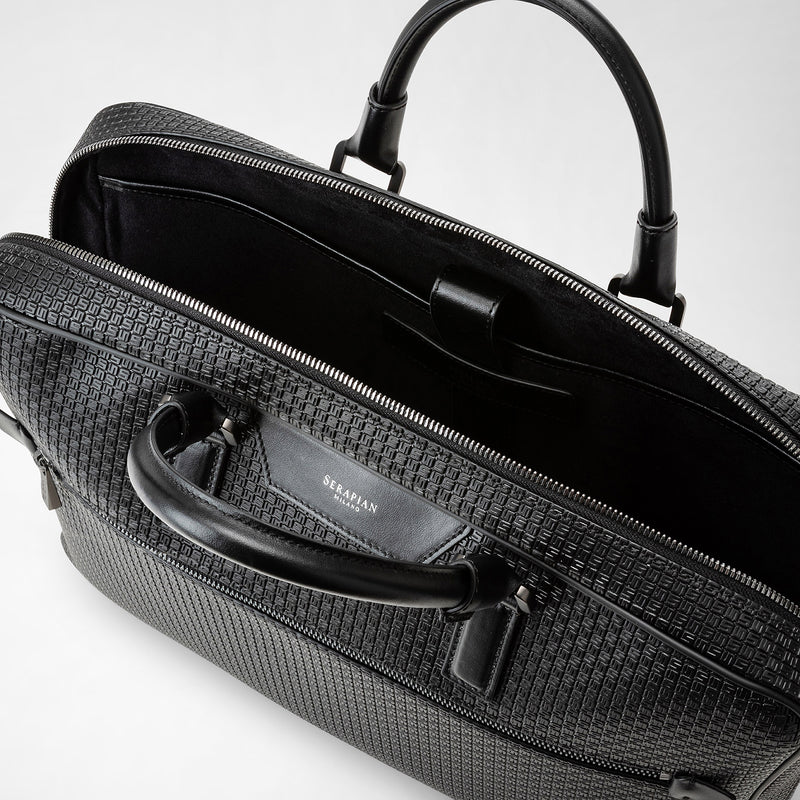 It's easy to make an impression with the modern yet refined Slim Briefcase in Black Stepan coated canvas with Eclipse Black leather inserts. You will have everything you need for business meetings with this lightweight yet durable Slim Briefcase. Created to stand the test of time, it is made from Stepan coated canvas, a sturdy and water-resistant material with an all-over S-etching detail. Originating from the far-sighted vision of Ardavast Serapian, Stepan was first trademarked in the mid-seventies and remains an exclusive house emblem.