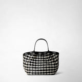 The Mini Secret Bag in Black and Off-White Mosaico nappa leather combines a uniquely petite style with the signature shape of one of the Maison's hallmarks, the Secret Bag. Because of its compact size and sumptuous texture, the Mini Secret Bag is both formal and informal, carrying all your daily essentials, seamlessly taking you from day to night while remaining lightweight and portable. This bag is made from Mosaico leather, an exclusive weaving process dating back to 1947, a true emblem of Serapian craftsmanship and Made in Italy tradition.