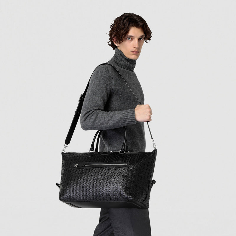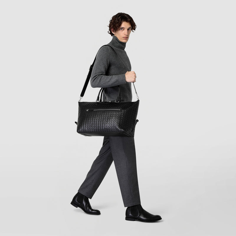 The sleek and spacious Travel bag in Black Mosaico nappa leather is the ideal bag to take with you on any trip, whether for business or pleasure. This durable travel bag is designed to hold all the essentials for an overnight stay, keeping them neat and organised.