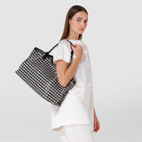The Secret Tote Bag in Black and Off-White Mosaico nappa leather boasts soft lines. A lightweight, roomy everyday tote for women seeking practical elegance, the Secret Tote Bag is an all-rounder with plenty of inner pockets and compartments.