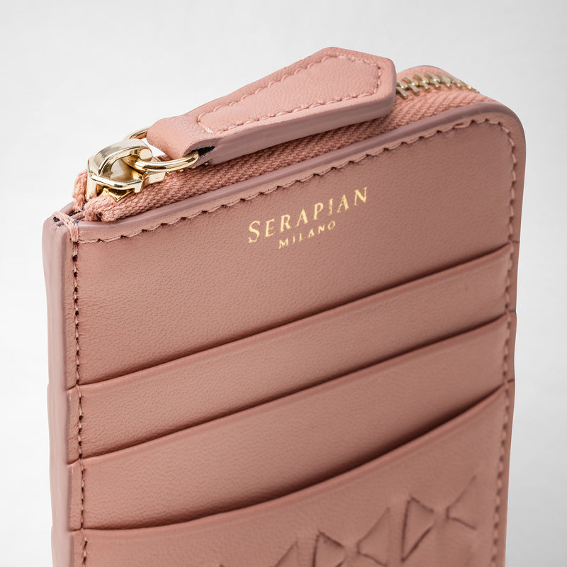 The Zip Card Case in Blush Mosaico leather is a practical alternative to large wallets. Its slim size makes it the perfect accessory to slip into your pocket or mini bag. Finely crafted in Italy by our artisans, this timeless accessory is fitted with card slots and a zipped pocket, perfect for keeping loose coins and notes secure. Each Zip Card Case is meticulously handcrafted with the signature Mosaico weaving process, a house exclusive since 1947. Buttery soft nappa leather strips in tonal or contrasting hues are delicately handwoven by expert craftsmen to create an eye-catching graphic pattern that is a true emblem of the Maison's virtuosity and Made in Italy tradition.