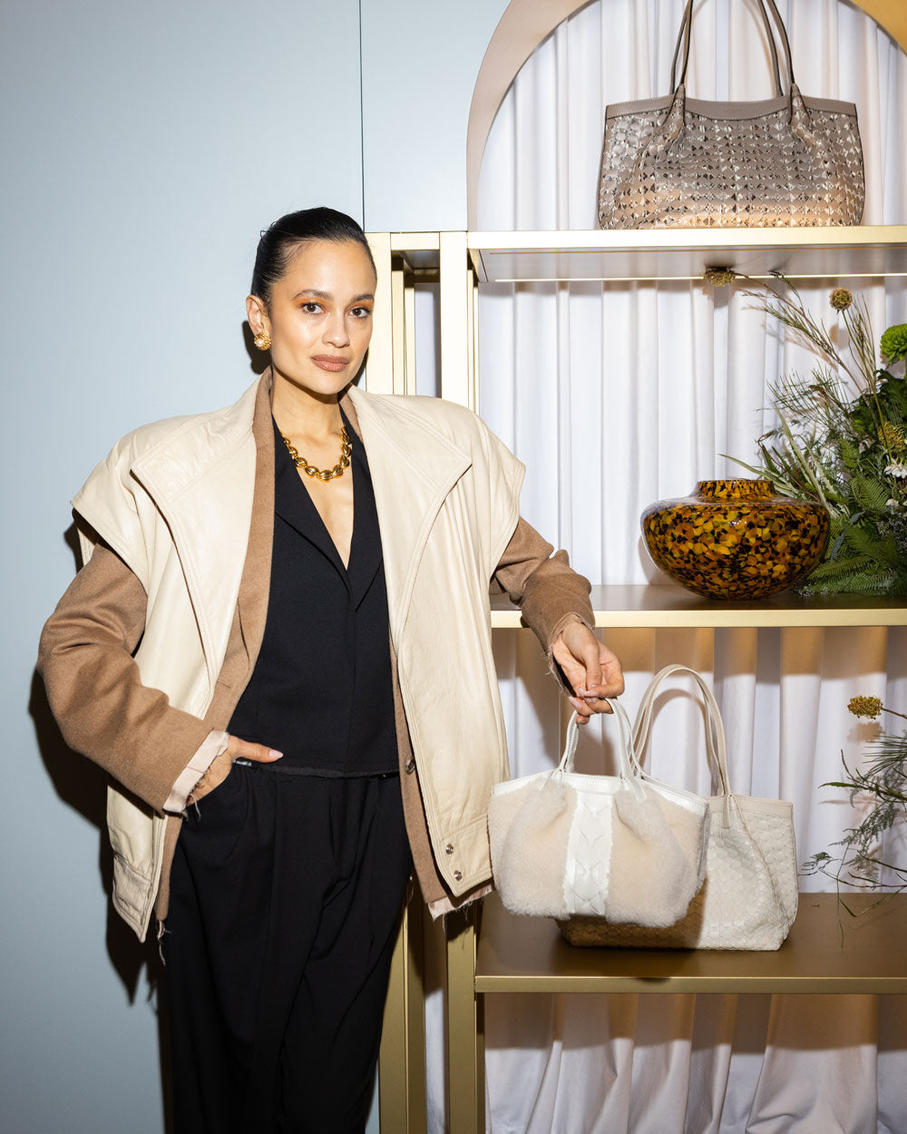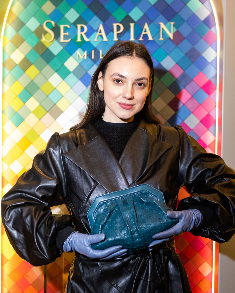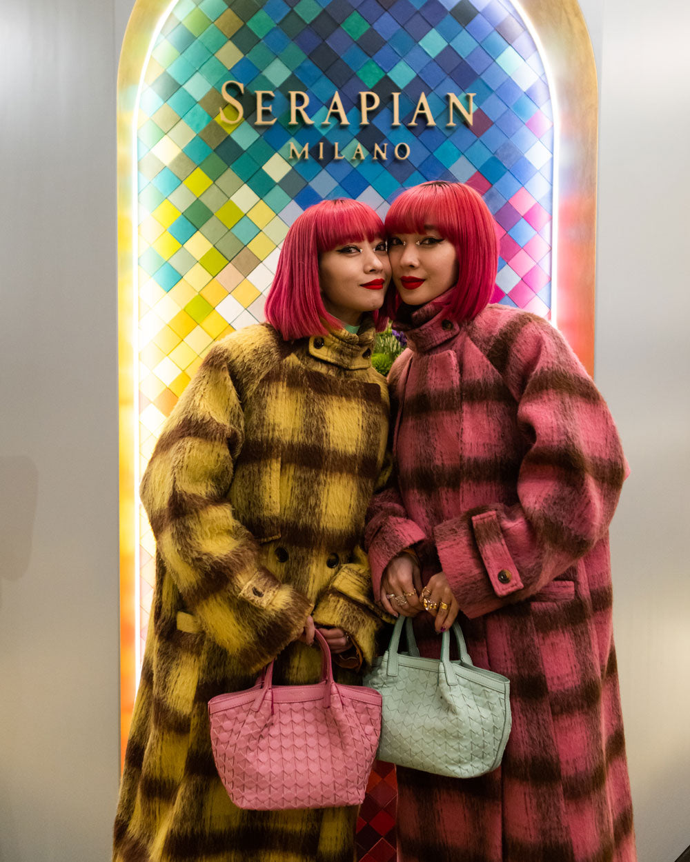 モザイコ編みと呼ばれる、上質なラムナッパレザーを丹念に手作業で編み込む手法を用いることにより、まるで見事な芸術作品のように、一つひとつのアイテムに唯一無二の仕上がりが得られます。1940年代から培われてきたノウハウこそが、まさにセラピアンを象徴するもの。現在は、シグネチャーとして愛されるメゾンのアイテムを「開花するデザイン(Design Blooming)」というテーマに基づき再解釈しています。マット、光沢、スムース、スエードなどさまざまな質感レザーを、色や特徴の異なる素材と絶妙に組み合わせることで生まれる、他にはない「Mestieri d’Arte(メスティエリ・ダルテ:「芸術工芸」の意)」が息づいています。