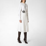 View photo: 正面ビュー:MOSAICO製ナノSECRETバッグが、白と黒の幾何学模様でコンパクトなフォルムで、長いショルダーストラップが付いています。