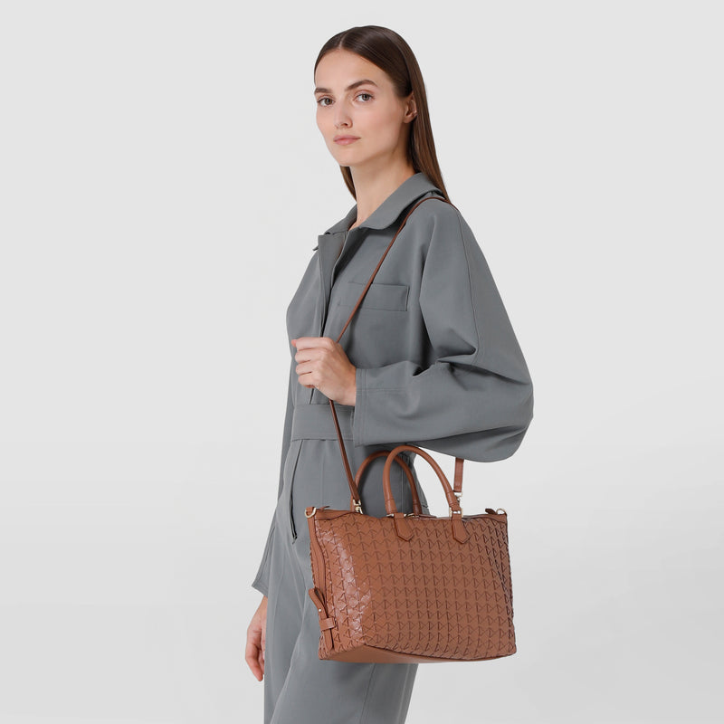 Named after the wife of the founder's son, the Ani Bag in Tan Mosaico is an updated smaller version of a bauletto travel bag that is part of the Serapian's archive. Subtle, elegant and folded at the sides to give a refined structure, the Ani is also eminently practical, perfect for those who are always on the go. This bag is made from Mosaico leather, an exclusive weaving process dating back to 1947, a true emblem of Serapian craftsmanship and Made in Italy tradition.