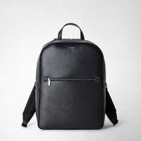 Sleek and sophisticated, the Backpack in Eclipse Black Evoluzione leather is the go-to bag for men who prefer a casual look even on formal occasions. Its spacious interior features various compartments and pockets to keep all your essentials on-hand and tidy. This model is handcrafted from Evoluzione calfskin leather, featuring clean lines and a classic yet unique design. Blending traditional craftsmanship and innovation, our resilient Evoluzione calfskin leather was first introduced by Stefano Serapian in 1965.