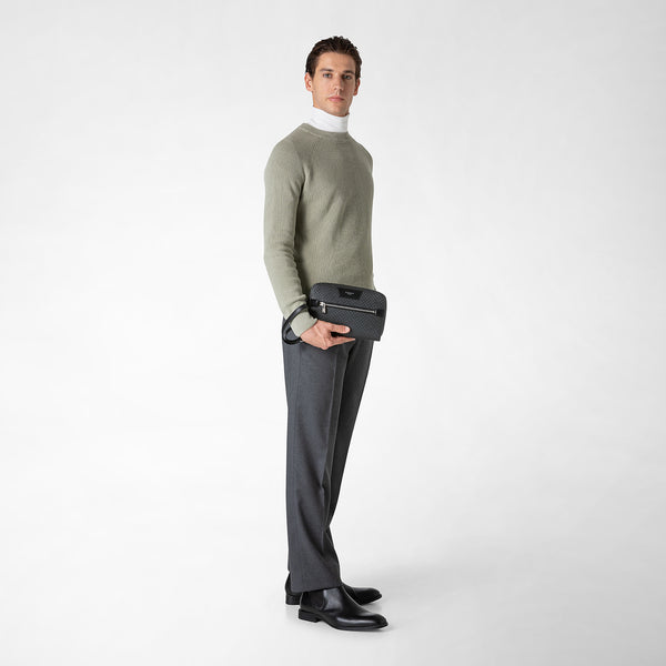 It's easy to make an impression with the modern yet refined Slim Briefcase in Asphalt Gray Stepan coated canvas and Black Gange leather. You will have everything you need for business meetings with this lightweight yet durable Slim Briefcase. Created to stand the test of time, it is made from Stepan coated canvas, a sturdy and water-resistant material with an all-over S-etching detail. Originating from the far-sighted vision of Ardavast Serapian, Stepan was first trademarked in the mid-seventies and remains an exclusive house emblem.