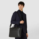 It's easy to make an impression with the modern yet refined Slim Briefcase in Black Stepan coated canvas with Eclipse Black leather inserts. You will have everything you need for business meetings with this lightweight yet durable Slim Briefcase. Created to stand the test of time, it is made from Stepan coated canvas, a sturdy and water-resistant material with an all-over S-etching detail. Originating from the far-sighted vision of Ardavast Serapian, Stepan was first trademarked in the mid-seventies and remains an exclusive house emblem.
