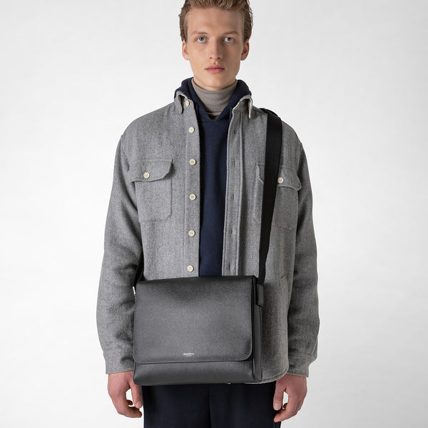 The Washbag in Eclipse Black Evoluzione leather features multiple zipped compartments and inner pockets to keep all your daily essentials tidy and handy, whether you're on an important business trip or last-minute getaway. This model is handcrafted from Evoluzione calfskin leather, featuring clean lines and a classic yet unique design. Blending traditional craftsmanship and innovation, our resilient Evoluzione calfskin leather was first introduced by Stefano Serapian in 1965.